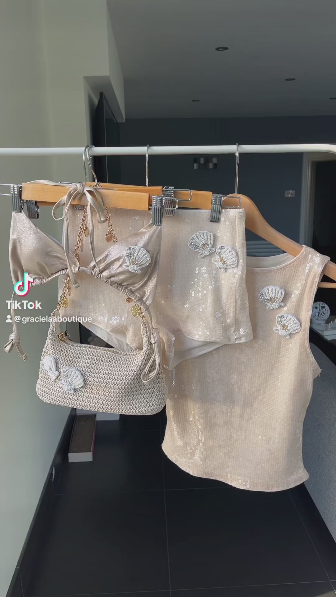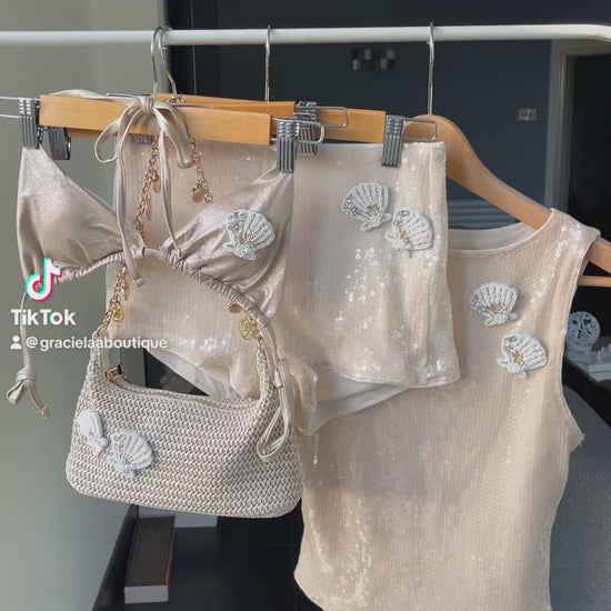 Beige beaded seashell bikini