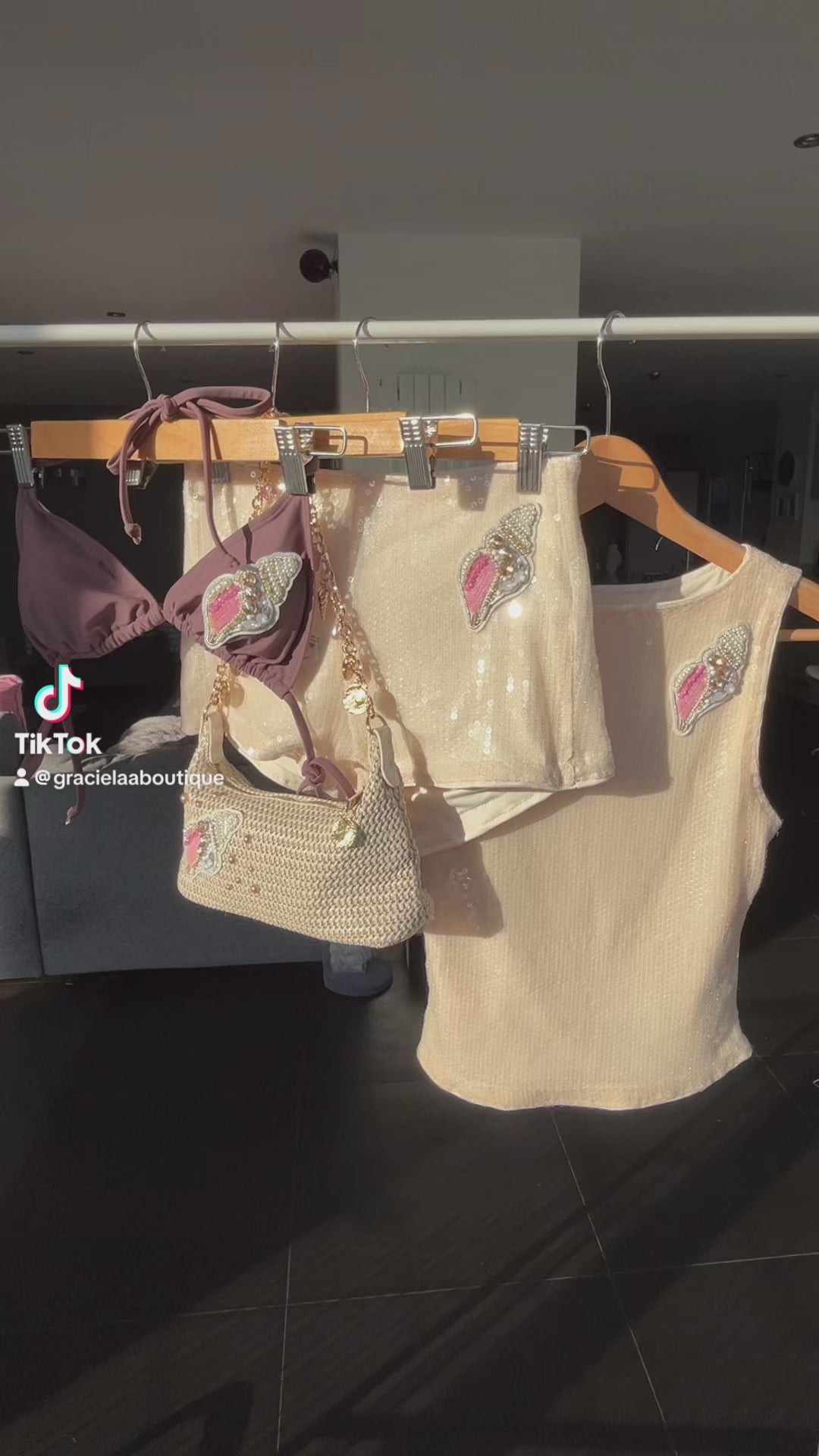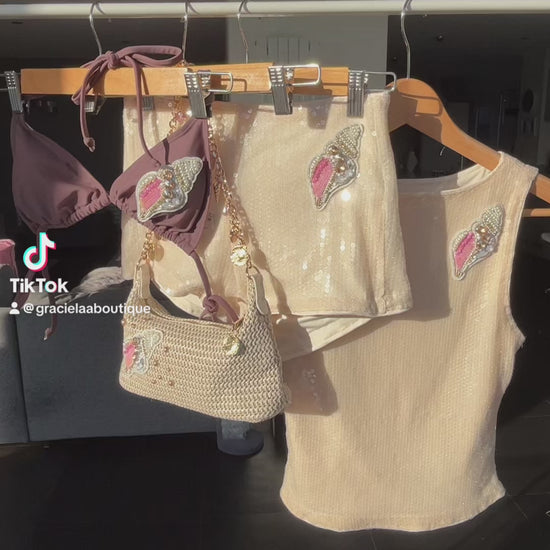 Beige beaded shell bikini