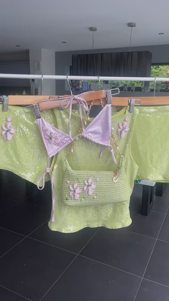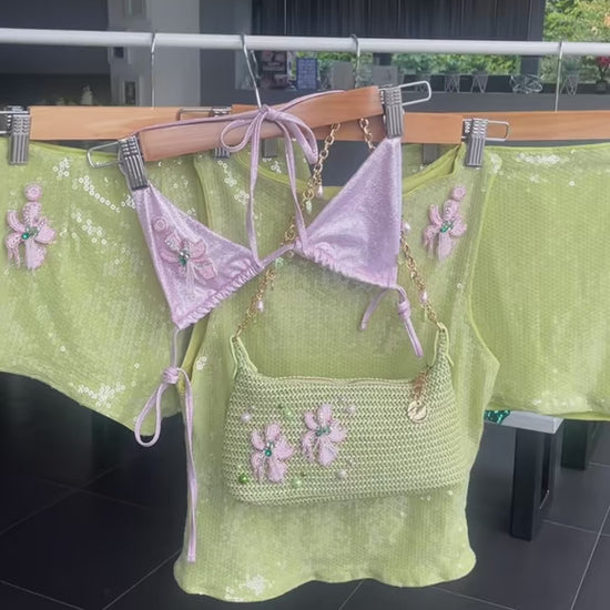 Matcha beaded flora sequin Skirt