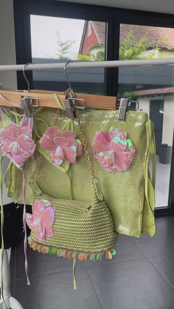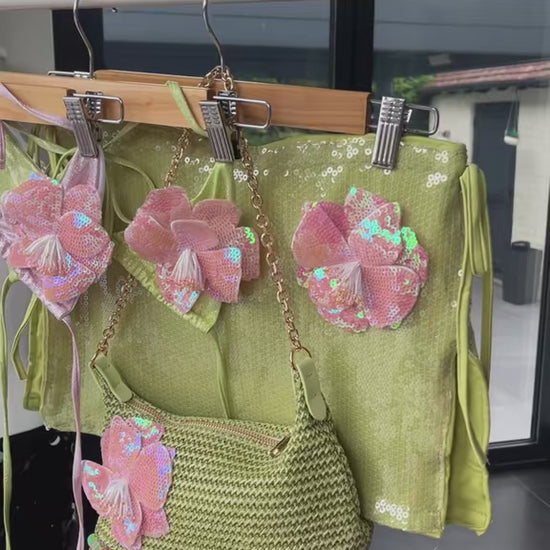 Matcha pink flora sequin skirt