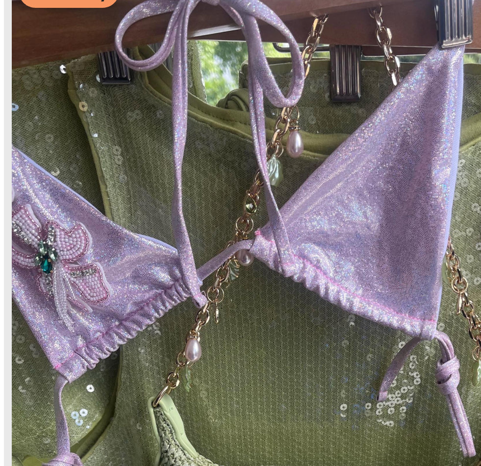 Pink sparkle beaded flora bikini