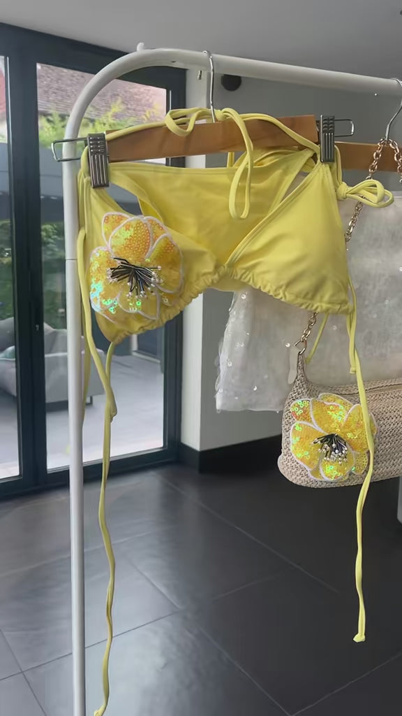 Pastel yellow floral bikini