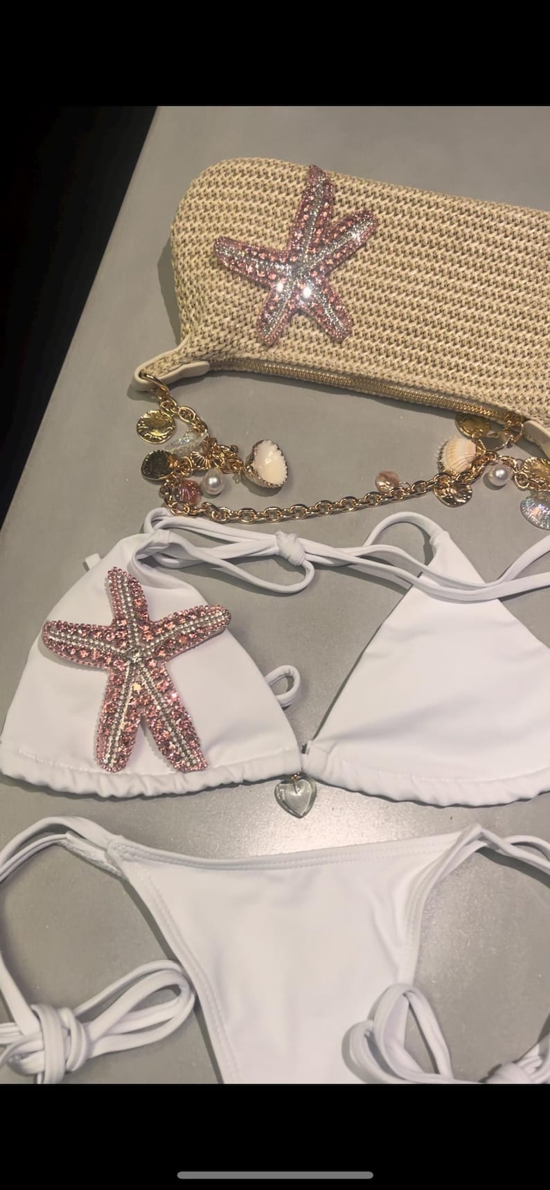 White / pink Gem starfish bikini